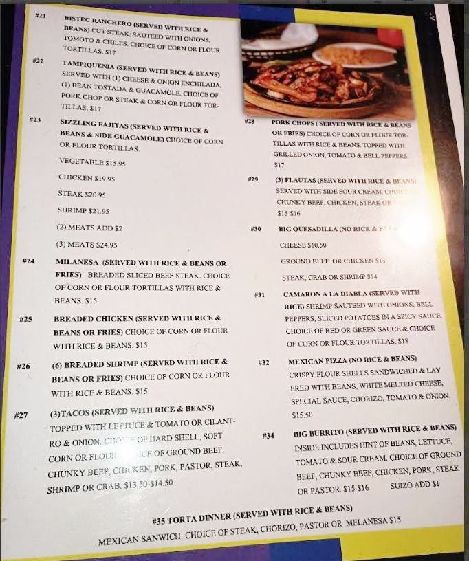 Many guests find themselves enjoying the menu’s staples like the Big Quesadilla Number 30, tacos, and chimichangas during weekday dinners or weekend gatherings. The restaurant’s Friday Fish Fry and seasonal offerings add a familiar yet distinctive touch that fits well with the friendly, local atmosphere. Whether stopping by for a quick bite or settling in for a shared meal with drinks, the experience feels welcoming and unpretentious.